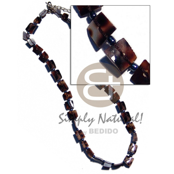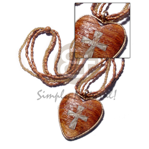 leather thong 40mm sq. brownlip shell with palm wood beads..