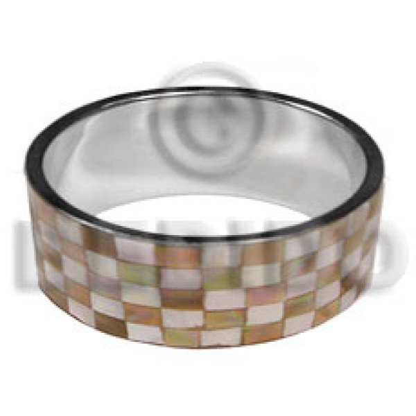 4 layers satin cord with single row 17 pcs. square 25mm laminated capiz in metal rings 40in in dar..