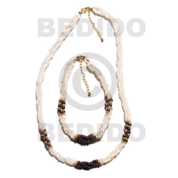 2 3mm coco Pokalet. natural white with black wood beads combination..