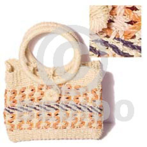 abaca weave natural peach bag l=8 in. w=