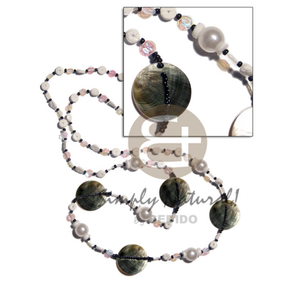 hammershell heishe natural.buri seed with 4 5mm coco Pokalet. bleached..