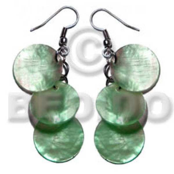 dangling 2 overlapping 25mm laminated capiz i in royal blue and green combination..