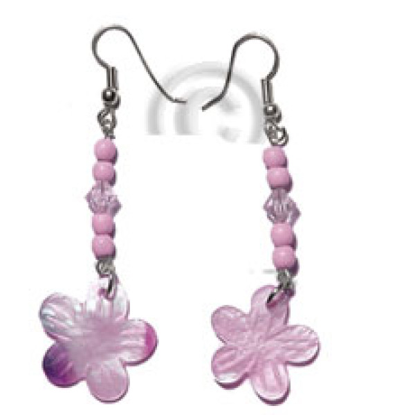 dangling 20mm pastel pink hammershell flower with wood beads acrylic crystals..