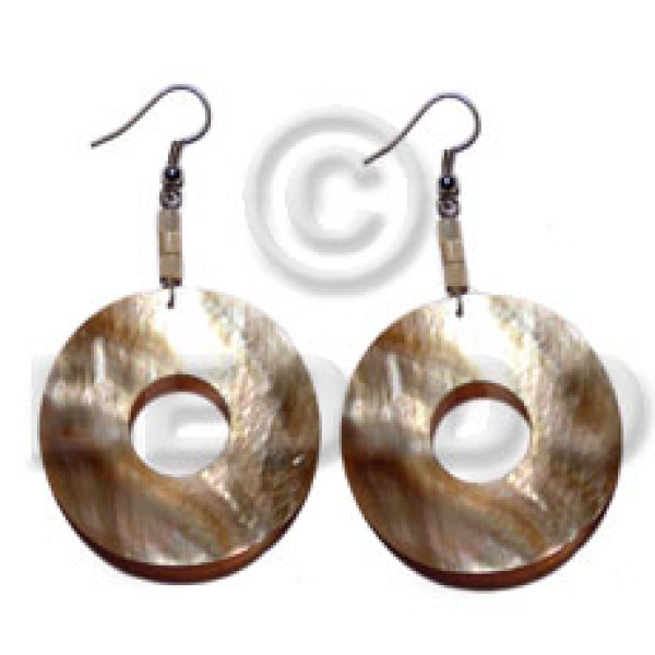 dangling round mother of pearl shell (MOP) hoop earrings 50mm..