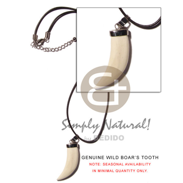 50mmx17mm tusk bleached buffed white wood on adjustable wax cord..