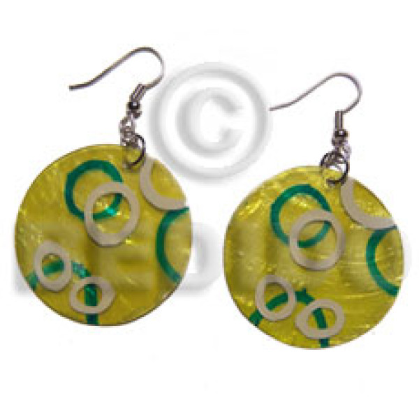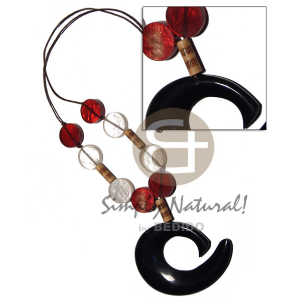 wax cord with 20mm laminated red natural white capiz with clear resin backing and bamboo burning wit..