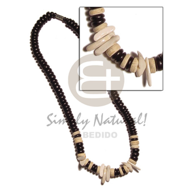 3 rows 2 3mm tassled natural brown coco Pokalet., bamboo, wood bead, shell combination with 40mm flo..