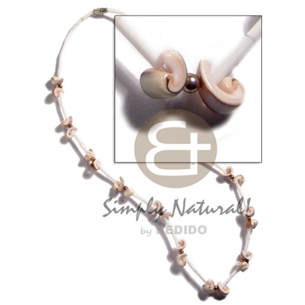 3 4mm bayong wood beads with bayong wood shark tail accent and shell beads..