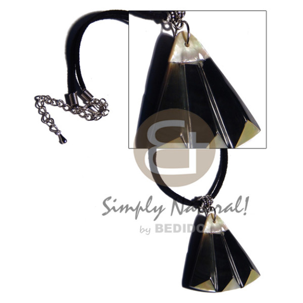 75mmx15mm bayong wood pendant with dangling teardrop 35mmx20mm kabibe shell in double wax cord with ..