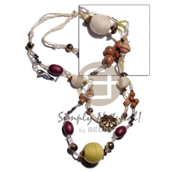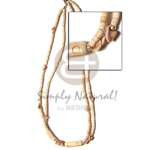 2 rows 2 3 mm heishe naturalwith chocolate orchids combination and center wood tube burning accent..