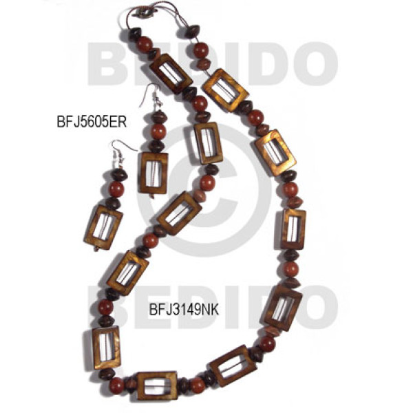 5 layers 2 3mm black coco heishe with black wood beads combination and dangling brown 5 pcs. capiz s..